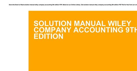 Download SOLUTION MANUAL WILEY COMPANY ACCOUNTING 9TH EDITION Doc Gutenberg